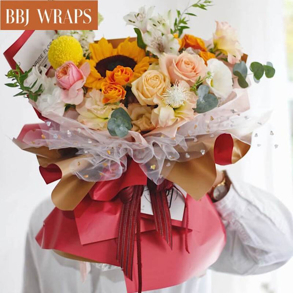 ❤️ Heart Mesh Design: The flower wrapping paper features a unique golden heart mesh design, adding a touch of glamour to your flower bouquet.