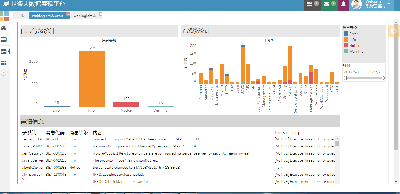 海峡银行日志监控与分析,通过采集IT应用系统运行产生的各项日志,利用大数据分析技术进行处理,整理与展示业务系统的当前规律及故障现象,预判企业应用系统可能出现的业务高峰或者发生的故障,以便及时解决IT系统可能发生的健康状况。